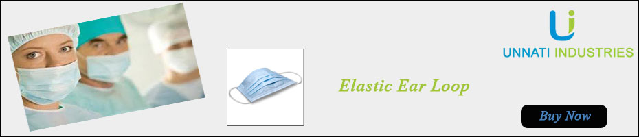 - Loop the elastic earloops behind your ears, with the top up. If you have a small face and the mask is too loose, tie knots in the elastic earloops.